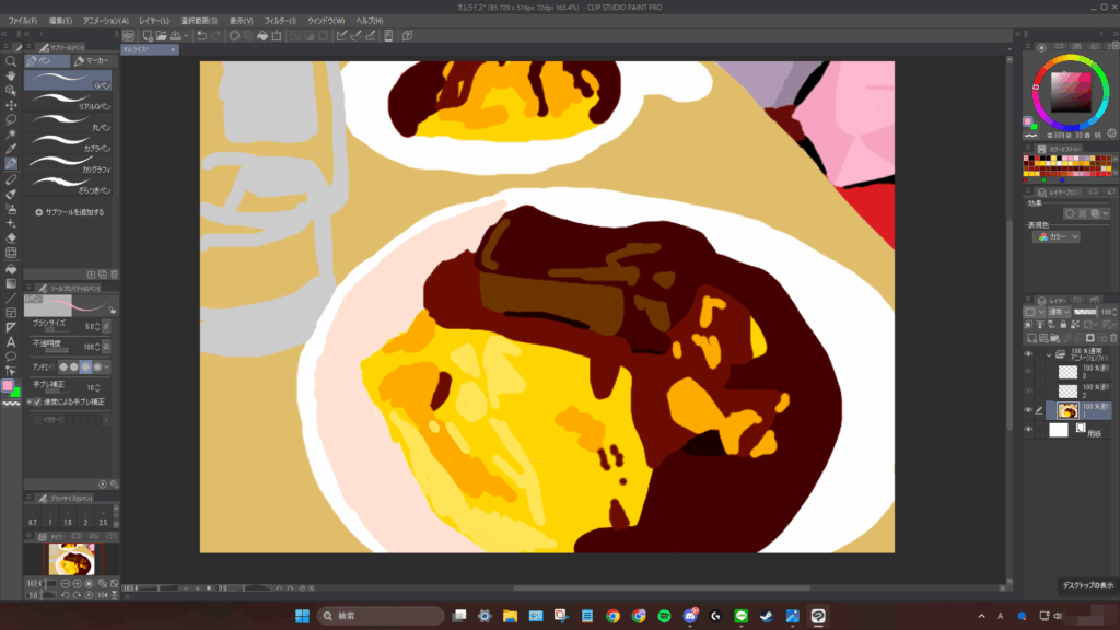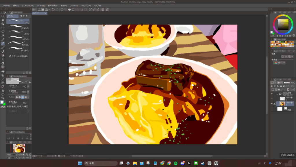 あとレイヤー1枚で描いているせいで背景のテーブルが描きにくすぎる。