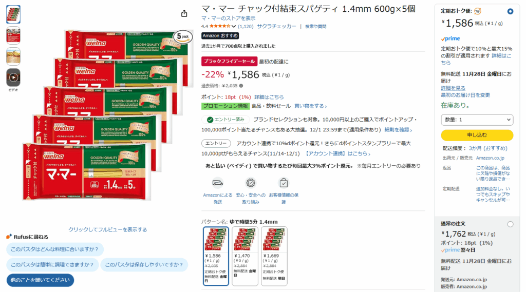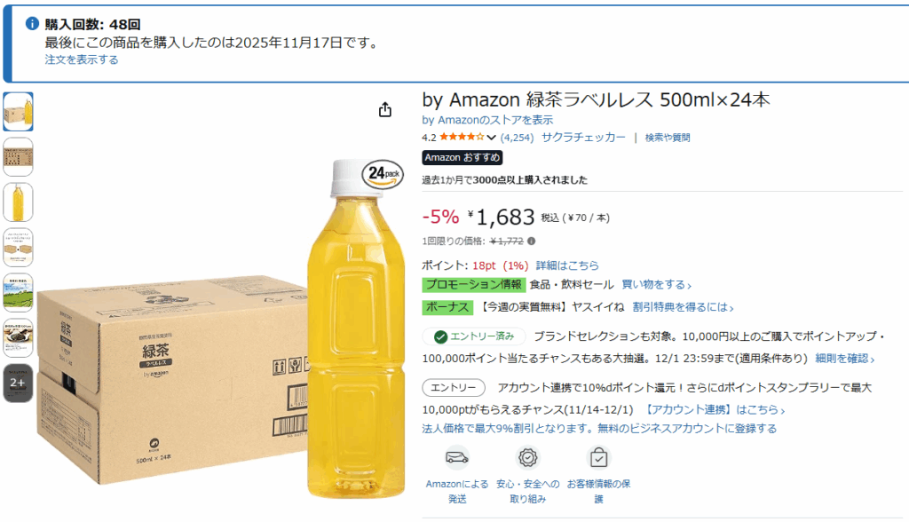 記事を書いていて気づいたんですけど、Amazonリンクを踏むと商品によっては勝手に定期おトク便の注文画面に飛ばされることがあるっぽいので、一応その解決法も書いておきます。
