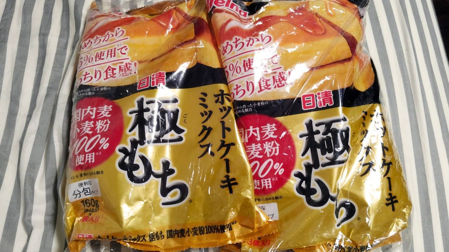 オモコロのホットケーキを食べ比べる動画でみんなおいしいって言ってて気になったので買ってみた。ふわふわのパンケーキ、楽しみ~~~!!!