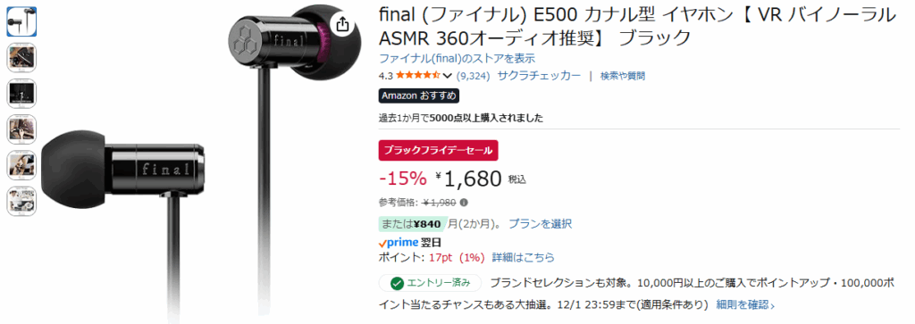 当時はE3000ってやつを使ってたけど、いまはE500が断トツで売れてるみたいなのでそちらを紹介。ありえんほどにコスパが良い。finalはいいぞ。