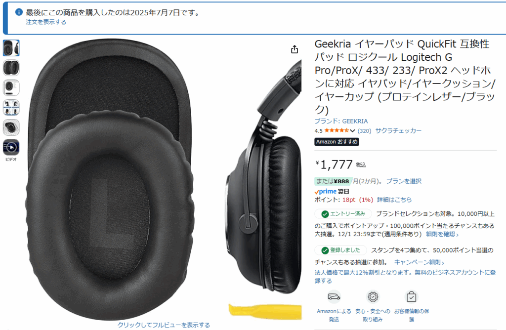 ちなみにあんまり知られてないけどイヤーパッドは単体で売られているので、イヤーパッドが汚れたり破けたりしちゃっても安価に買い替えられる。筆者も7月に新調した。ブラックフライデー対象外なので+α枠としてついでに一応紹介。