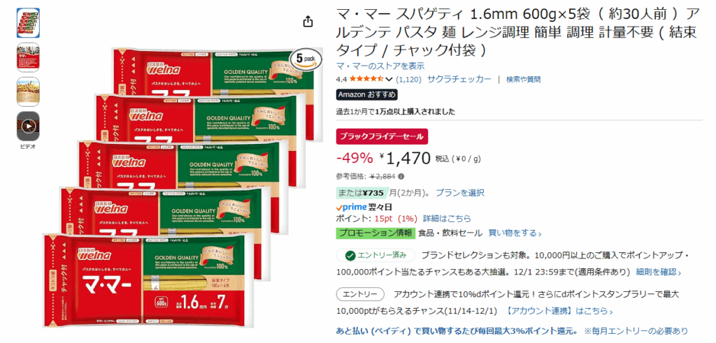 最近パスタをつくるようになり、大変お世話になっているマ・マーのパスタがほぼ半額。