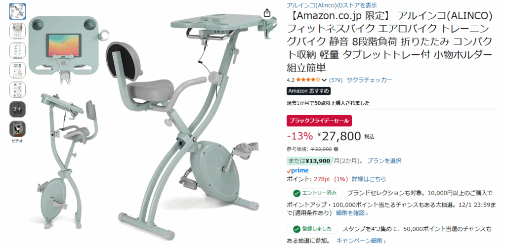 カービィの桜井さんも同じアルインコのバイクを使っているので間違いない。運動不足解消!