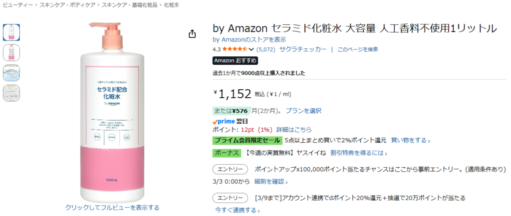 by Amazon セラミド化粧水 大容量 人工香料不使用1リットル