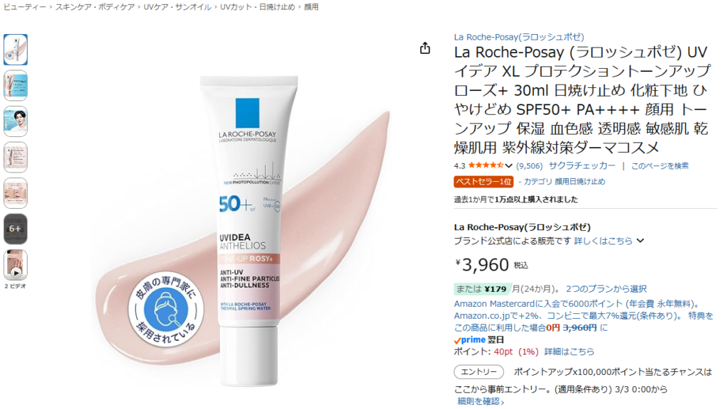 La Roche-Posay (ラロッシュポゼ) UVイデア XL プロテクショントーンアップ ローズ+ 30ml 日焼け止め 化粧下地 ひやけどめ SPF50+ PA++++ 顔用 トーンアップ 保湿 血色感 透明感 敏感肌 乾燥肌用 紫外線対策ダーマコスメ